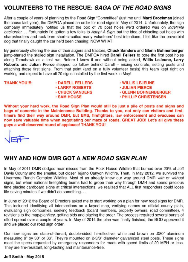 The Board of Directors and Committee Members for the Davis Mountains Property Owners Association consist of volunteering, Davis Mountains Resort property owners. If you find any errors or omissions contact the DMPOA office, or address your concerns at a Board Meeting.